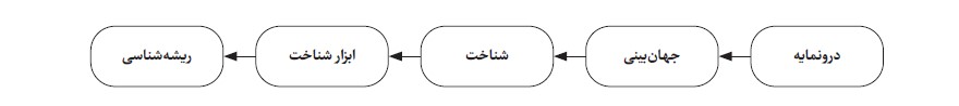 منشأ جهان‌بینی‌ها «شناخت» است و شناخت وابسته به «ابزار شناخت». ابزار متفاوت، جهان‌بینی‌های متفاوت پدید می‌آورد و این باعث بروز درون‌مایه‌های متفاوت می‌گردد. (مطهری، 1380: 16)