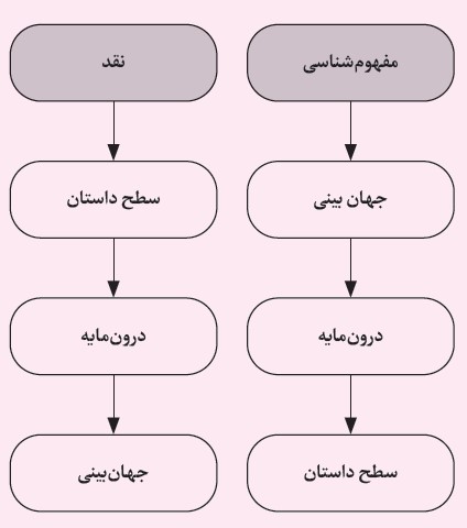 با توجه به این نکته برای مفهوم‌شناسی به شناخت عمق و حرکت به سوی سطح نیازمندیم؛ یعنی با شناخت جهان‌بینی و تجلی آن در درون‌مایه به نشانه‌های آن در سطح داستان پرداخته خواهد شد، و برای نقد ادبیات انقلاب این روند معکوس طی می‌شود؛ یعنی از روساخت (با روش‌های پژوهشی چون نشانه‌شناسی، تحلیل گفتمان و…) به ژرف‌ساخت دست می‌یابیم.
